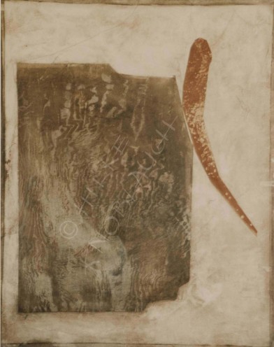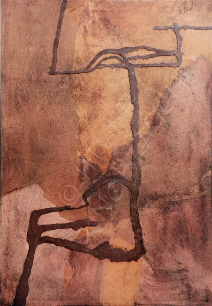 aus der 7-teiligen Serie "Lebenslinien II", Collage/Mischtechnik auf Leinwand, rostrot, 100 x 70 cm