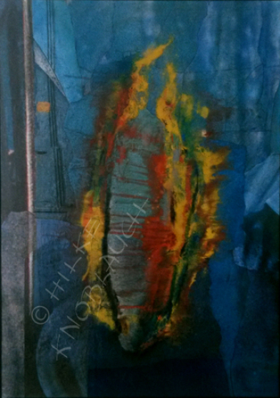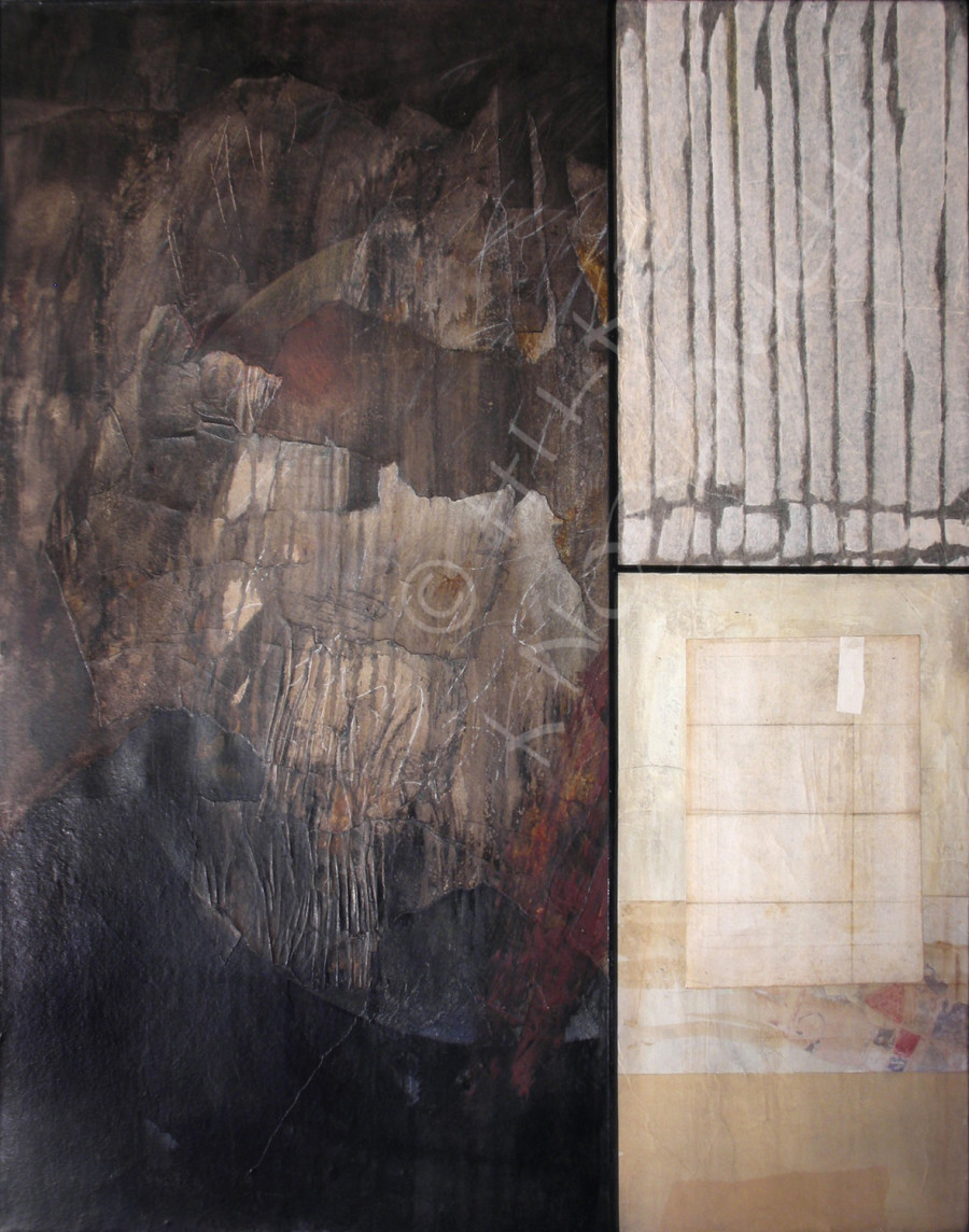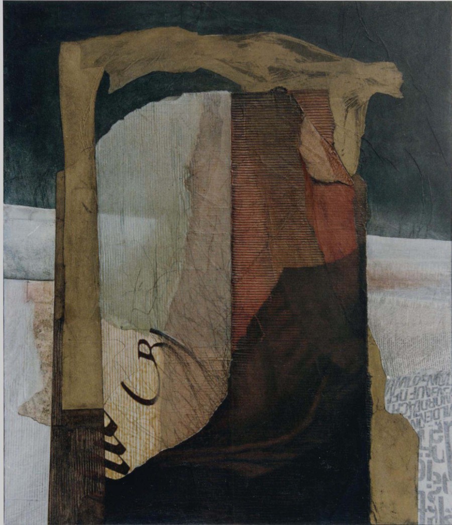 "Tor der Angst", Collage/Mischtechnik auf Leinwand, 140 x 120 cm