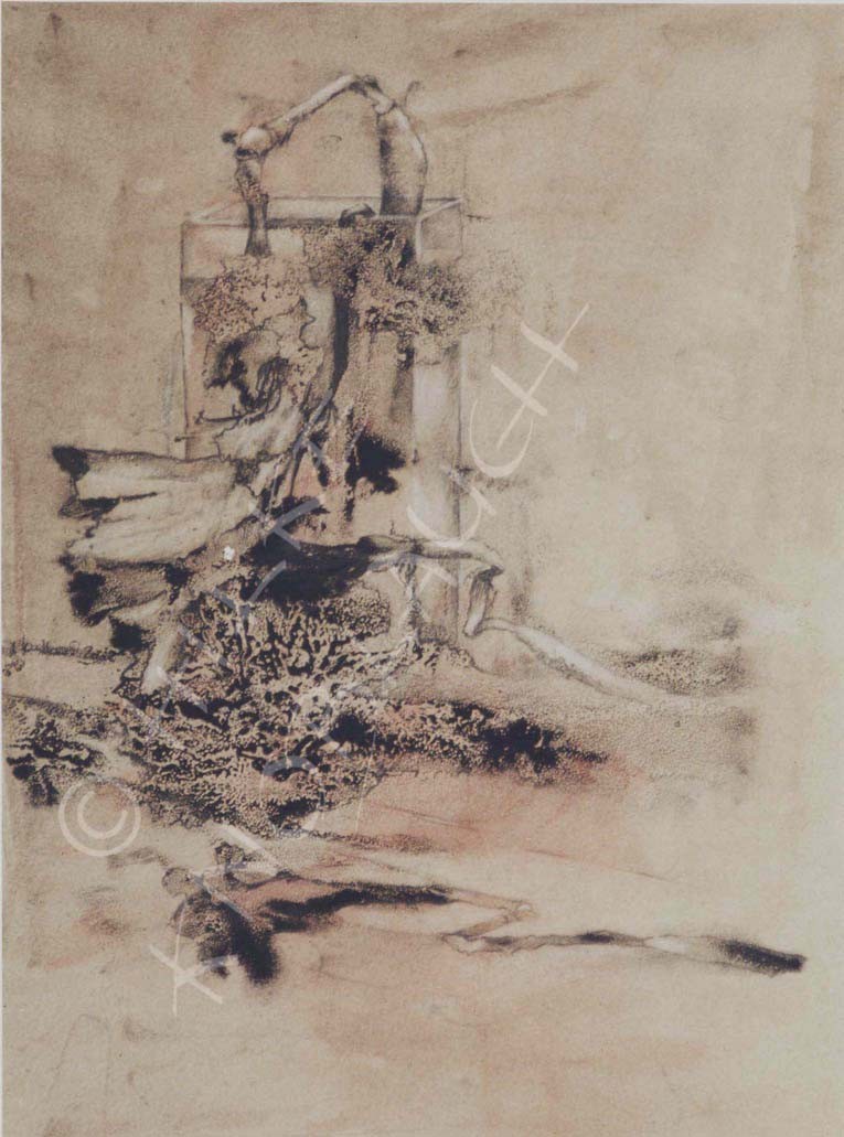 o.T. Öl,Terpentin, Tusche, auf Papier. 40 x 30 cm